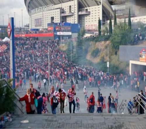 但少數(shù)極端球迷隨后開始滋事,向馬德里警方投擲雜物,局勢(shì)迅速惡化。警方起初嘗試維持秩序,卻未能控制局面,不得不采取強(qiáng)硬手段清場(chǎng)。防暴警察出動(dòng),后續(xù)又部署騎警介入驅(qū)散人群,鬧事球迷甚至朝警用馬匹拋擲物品。