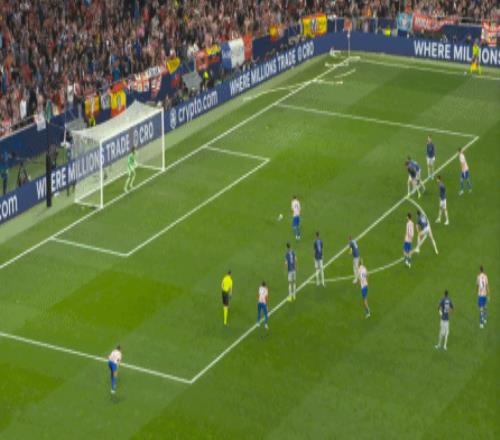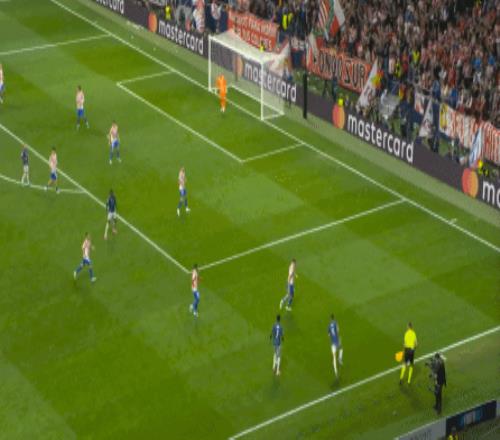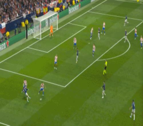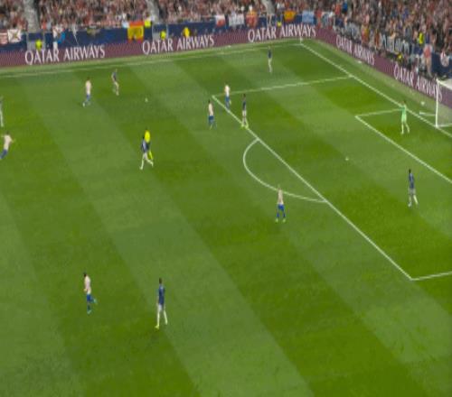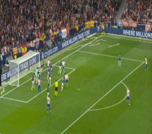 所以在三次進攻當中,還是格列茲曼在二線串聯(lián),打出邊路傳中,這一次的阿爾瓦雷斯表現(xiàn)不錯,通過后上爭到了落點: