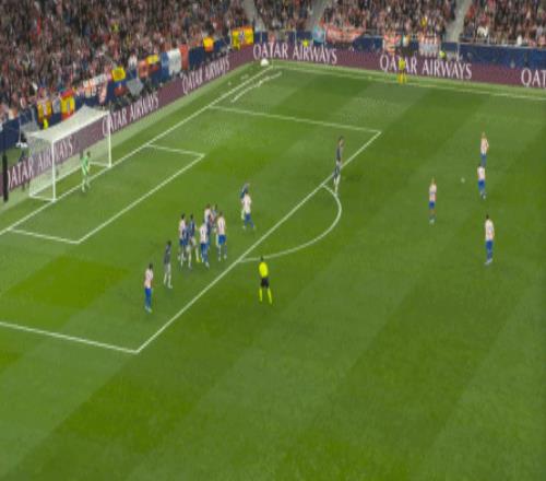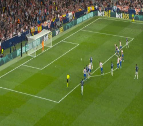 于是,因為沒接好球而補過心切的哲凱賴什送上犯規(guī),讓阿爾瓦雷斯打出了一腳質(zhì)量不錯的任意球: