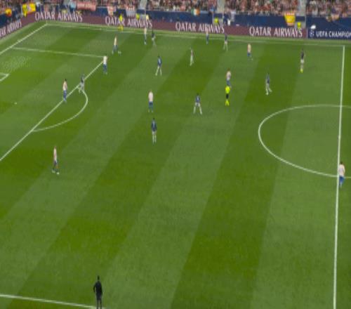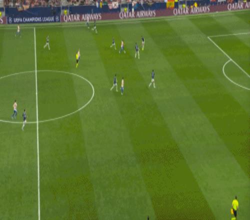 小隊長光顧著指揮隊友,卻沒有進入到自己該接球的狀態(tài),于是被漢茨科完成斷球,馬競就這樣開始了他們的推進: