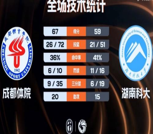 末節(jié)決戰(zhàn),湖南科大進(jìn)攻端還是不好,打了4分多鐘又是僅拿2分,而白琳連得5分助成都體院擴(kuò)大領(lǐng)先,隨后雙方繼續(xù)拉鋸戰(zhàn),白琳內(nèi)外開花還是幫助成都體院牢牢掌握住比賽主動權(quán),最終成都體院67-59力克湖南科大。