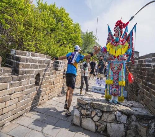 除此之外,組委會在50km組別CP3的慕田峪烽火臺處,精準匹配大批量選手集中通過的9點30分-11點時段,安排了非遺京劇曲目《穆桂英掛帥》的現(xiàn)場表演,讓長城、京劇這極具北京符號的元素與越野跑完成完美碰撞,讓高爬完烽火臺的選手力量再度涌上。