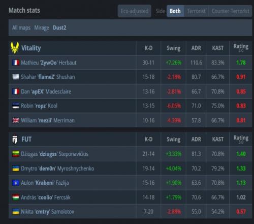 Vitality:mezii、apEX、ropz、flameZ、ZywOo