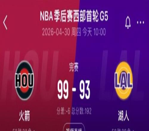 4月30日,坐擁主場之利且手握3-1領(lǐng)先優(yōu)勢的湖人,在斯臺(tái)普斯中心迎來與火箭的西部首輪G5生死戰(zhàn)。令人意外的是,球隊(duì)最終以93-99惜敗對手,被火箭連扳兩城,系列賽懸念驟然升溫,晉級(jí)形勢由一片坦途轉(zhuǎn)為膠著拉鋸。