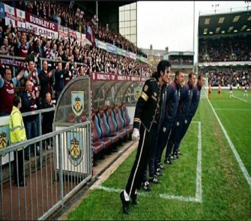 網(wǎng)友將邁克爾-杰克遜經(jīng)典的45度前傾動(dòng)作P進(jìn)了伯恩利的教練席,以及邁克爾-杰克遜在伯恩利教練席指揮圖。