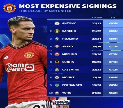 最近這份“曼聯(lián)近十年最貴引援榜”出爐,最扎眼的其實(shí)不是安東尼的9500萬歐元排第一,也不是桑喬的8500萬歐元排第二,而是前三名里,已經(jīng)有兩筆基本可以定性為嚴(yán)重虧本。目前,曼聯(lián)已經(jīng)同意安東尼正式轉(zhuǎn)會(huì)貝蒂斯,桑喬被租借到了維拉,加上霍伊倫也被租去那不勒斯。也就是說,榜單前三的高價(jià)前場引援,到了2026年這個(gè)節(jié)點(diǎn),居然全都沒能留在曼聯(lián)的主線計(jì)劃里。單看這批人的現(xiàn)狀,就是最直接的性價(jià)比體現(xiàn)。