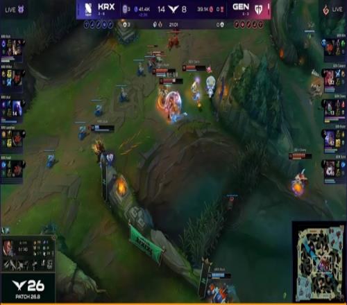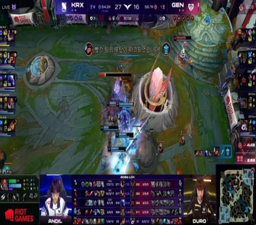 23分鐘KRX再次找到機(jī)會(huì),Willer猴子再次開(kāi)轉(zhuǎn)配合蘭博大招強(qiáng)殺掉了GEN下路組!這波KRX還了一波2換4!24分鐘Chovy阿卡麗直接沖臉但是Duro璐璐大招給晚了導(dǎo)致第一時(shí)間沒(méi)秒掉人!Rich蘭博貼臉火烤傷害拉滿自己還沒(méi)死??!這波又是KRX的2換3!