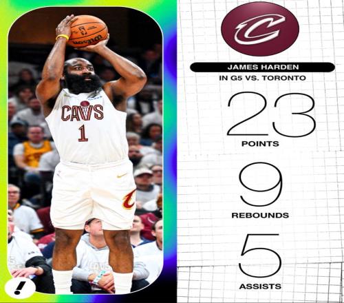 哈登來(lái)到騎士隊(duì)后季后賽場(chǎng)均35.6分鐘,拿到22分6.2助攻4.4籃板2搶斷0.6蓋帽,命中率48.6%,三分命中率41%,場(chǎng)均3.2個(gè)三分球。