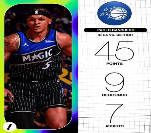 4.季后賽單場(chǎng)45+5+5魔術(shù)隊(duì)史首人;