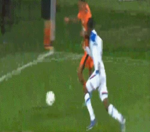 第14分鐘,戈梅斯傳中,埃吉納爾多射門踢疵