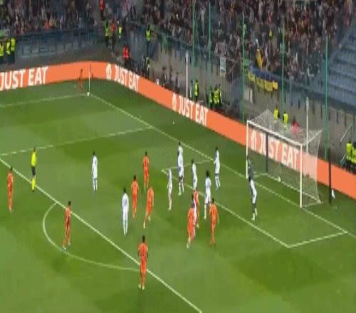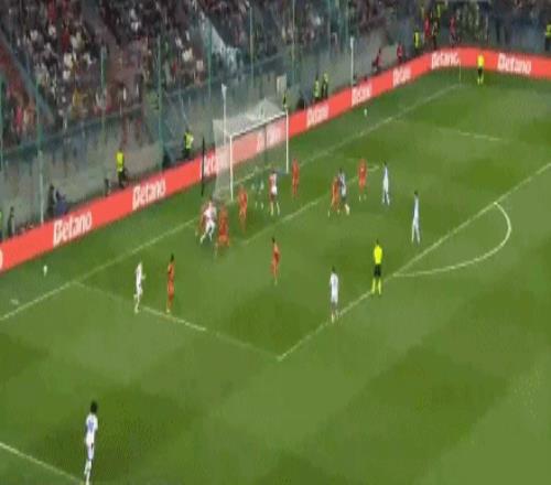 第73分鐘,埃吉納爾多頭球攻門,皮球高出球門