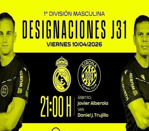 4月9日,西班牙足協(xié)官方公布了西甲第31輪周五比賽皇馬vs赫羅納的裁判安排,哈維爾-阿爾韋羅拉將擔任主裁。北京時間4月11日凌晨3:00,皇家馬德里將主場對陣赫羅納。西班牙足協(xié)官方