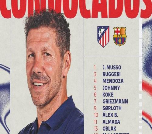 北京時(shí)間4月14日,馬競官方公布?xì)W冠1/4決賽次回合,主場對(duì)陣巴薩的大名單,阿爾瓦雷斯領(lǐng)銜,奧布拉克、卡多佐回歸。守門員:1-穆索、13-奧布拉克、31-薩爾維-埃斯基韋爾后衛(wèi):3-魯杰里