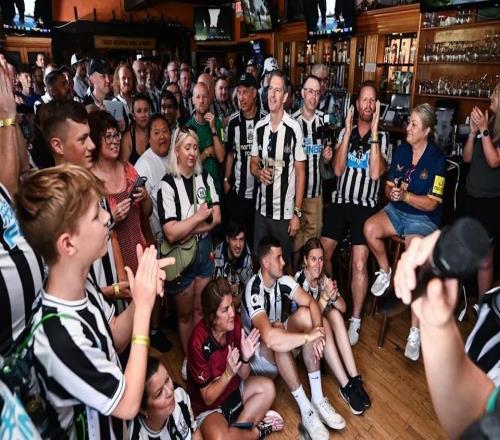 紐卡把英聯(lián)杯獎杯空運到美國,球迷合影要排隊