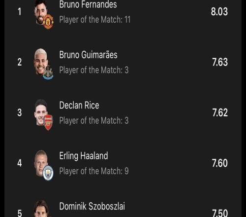 WhoScored的賽季評分榜更新了,英超最高分的球員名單里,有幾個名字讓球迷撓頭。利物浦的薩拉赫以7.94分領(lǐng)跑,這倒不意外——他本賽季直接參與進球數(shù)已經(jīng)追平個人英超紀錄。但往