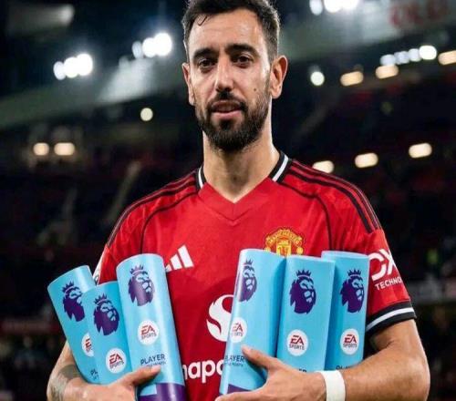 曼聯(lián)周一飛赴愛爾蘭的都柏林進(jìn)行集訓(xùn),隊長布魯諾·費(fèi)爾南德斯同時獲得了英超3月最佳和俱樂部3月最佳球員的稱號,上個月他4場比賽打入2球、助攻4次。B費(fèi)拿著兩個獎杯拍攝了照片