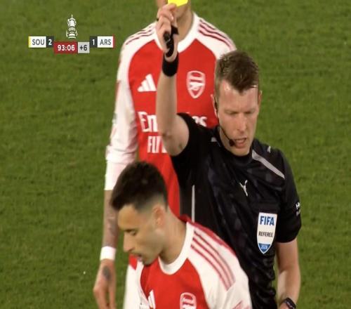 足總杯1/4決賽,阿森納客場對陣南安普頓,阿森納邊鋒馬丁內利在尾聲階段因推搡主裁被出示黃牌。此役客場對陣南安普頓,先丟一球的阿森納一度將比分扳平,但在第85分鐘再丟一球。比