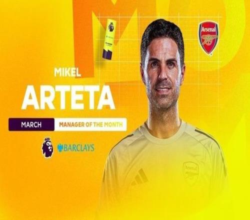 北京時間4月3日,英超官方宣布,阿森納主帥阿爾特塔當(dāng)選聯(lián)賽3月最佳教練。官方公告阿森納主教練阿爾特塔第八次榮獲巴克萊英超月度最佳教練獎。這位西班牙教頭憑借三月份的完美