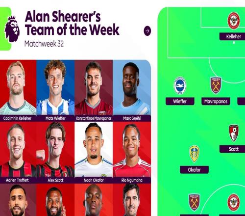 英超第32輪比賽已經結束,英格蘭足壇傳奇前鋒希勒評選出了本輪的最佳陣容,格伊、恩古莫哈、奧卡福爾等人入選。希勒評英超第32輪最佳陣容門將:凱萊赫(布倫特福德)后衛(wèi):魏費爾(布萊頓